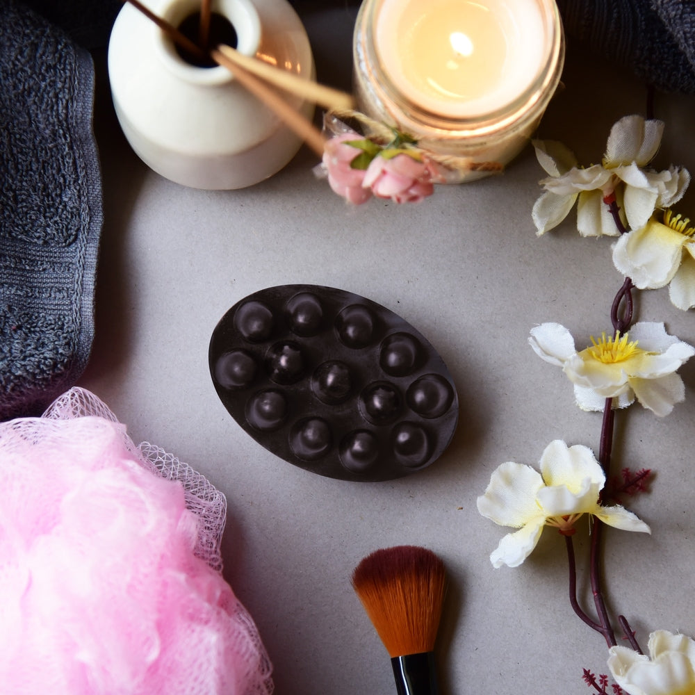 A unique addition to your bath routine, this Charcoal massage soap is a must-have for anyone who needs a break. Allow yourself to be pampered with our charcoal massage soap bar. The fingers will gently massage your skin while receiving the benefits from the natural soap made with moisturizing ingredients.