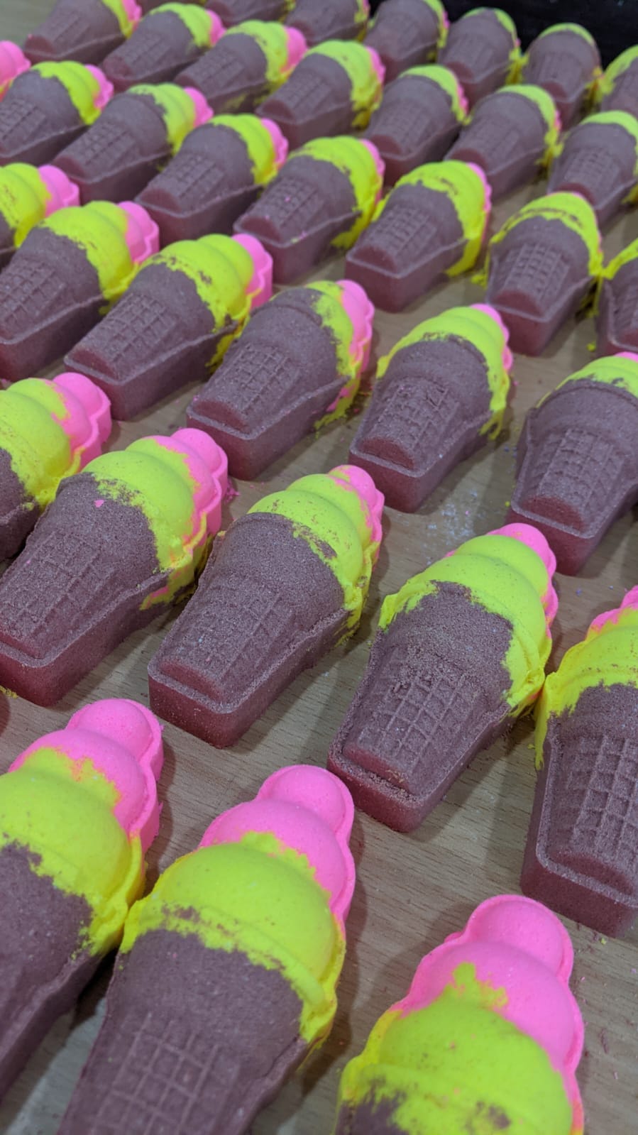 Immerse yourself in joyous relaxation with our Cone Delight Bath Bomb. A cone of blissful scents and colorful fizz awaits.