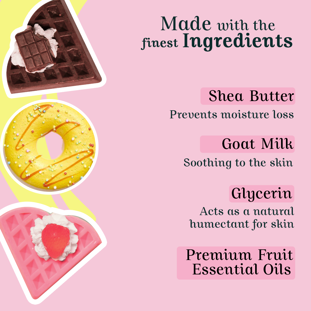Tempt your inner senses on with the aroma of sweet strawberry and Choco chip waffle adorned with whipped cream and yummy chocolate and strawberry toppings. The box includes a Mango donut which will take your body on a juicy ride.