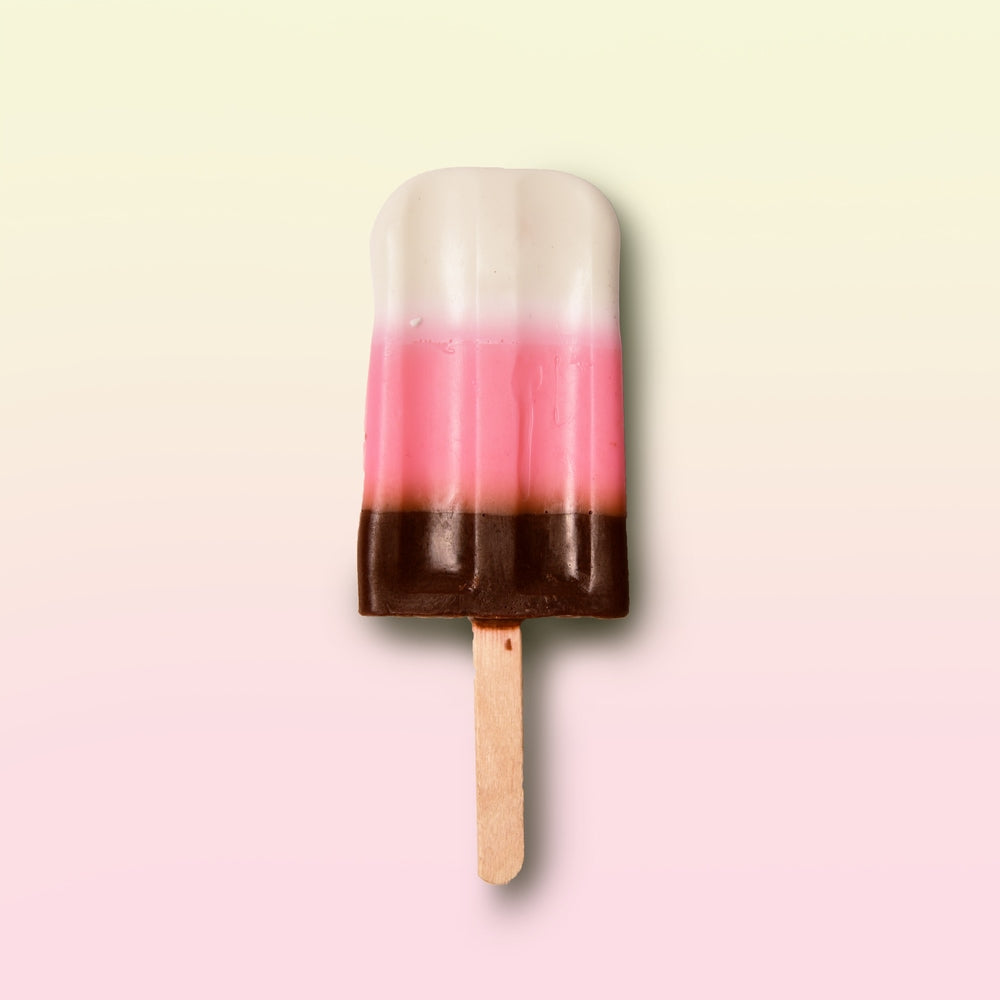 Indulge in a zero-calorie decadent bath treat with our delightful ice pop soap. Our classic ice pop soaps are ready to fill your bath routine with flavorful fun with some Vanilla Strawberry and Chocolate trio!