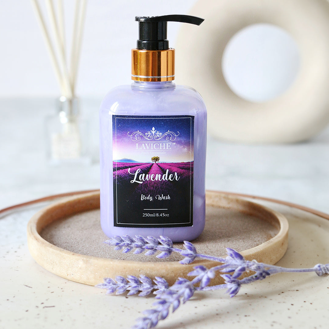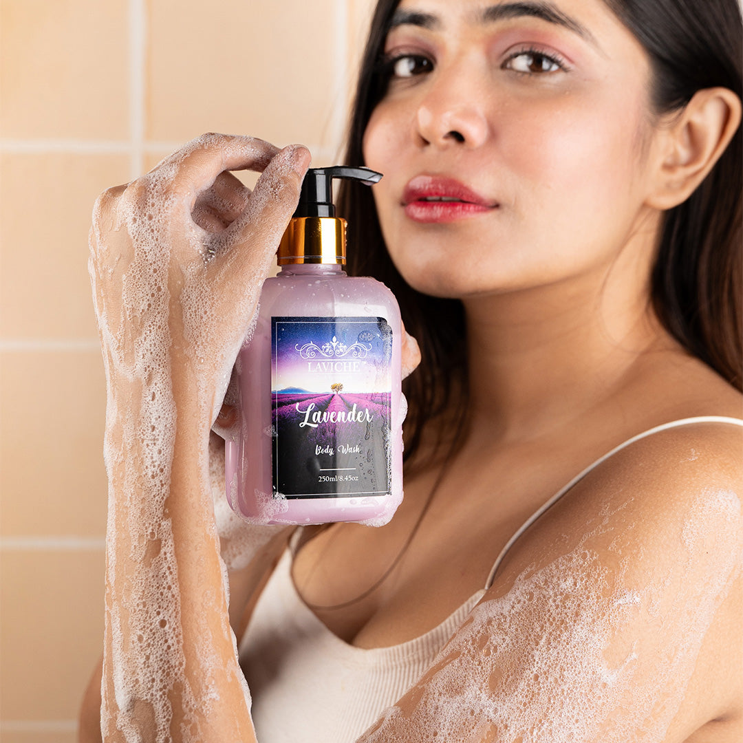 | Lavender Body Wash- Your bathing will be enchanting with the beautiful fragrance of lavender and it's skin benefits like 1) Soothing skin inflammations 2) Reducing Stress 3) Lock moisturizer into the dry skin 4) Give you glowing refreshing skin |