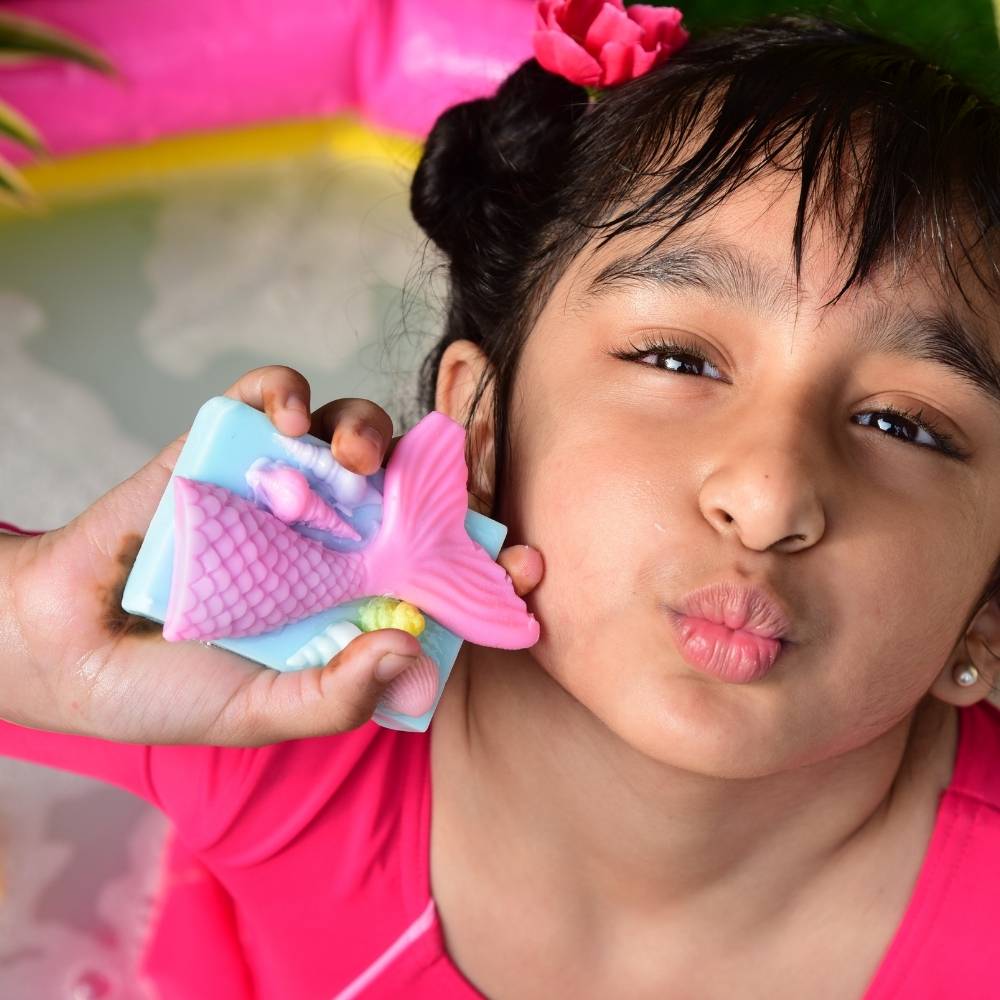 Bring home the joy of the fantasy underwater world with this beautiful mermaid soap. Enjoy the fresh scent and moisturizing lather while you take in the benefits of the natural ingredients carefully picked to compliment your bathing routine.