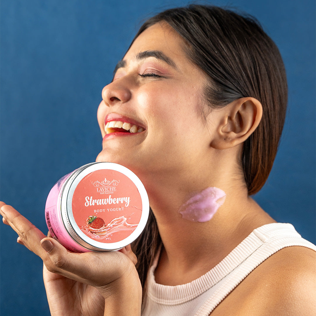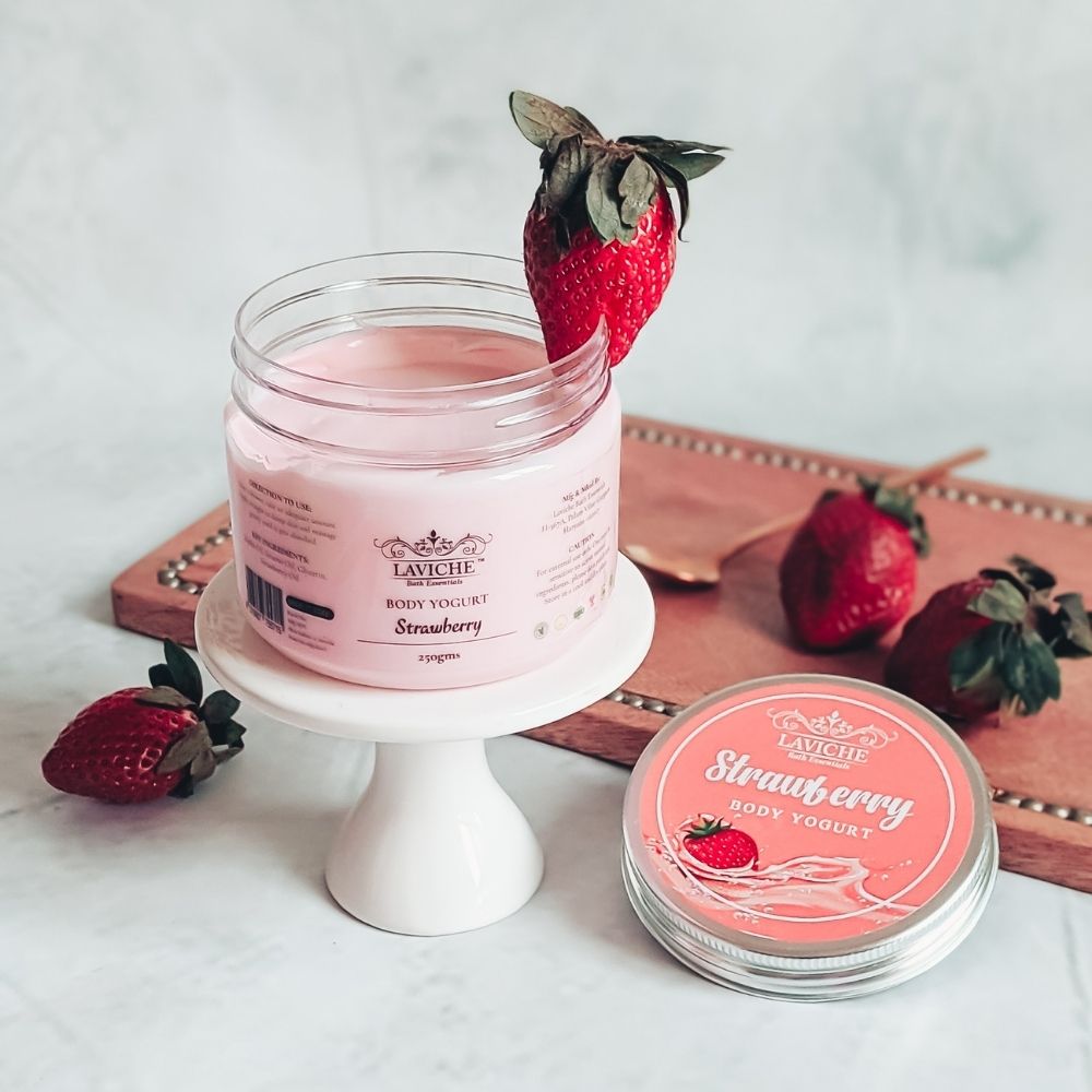 Strawberry Yogurt gives your skin quick, light and long lasting moisturizing! This Yogurt is fast-absorbing and hydrating with a texture that will leave you feel mesmerizing. The lightweight formula is quick absorbent and provides long-lasting moisturization. The smooth and lovable texture created with the goodness of fresh juicy strawberries – and all this without any toxins or harmful chemicals is the icing on top!