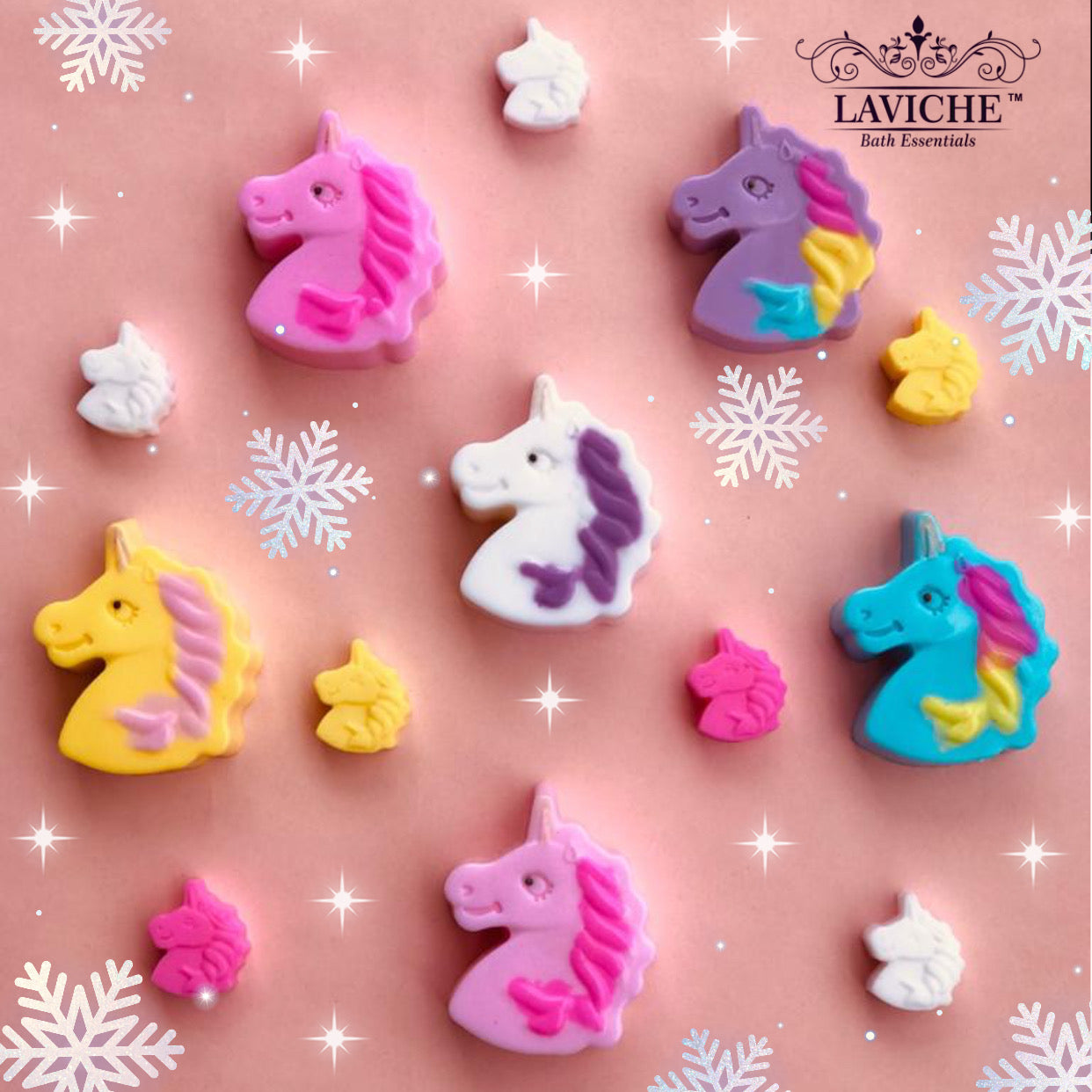 It’s a sparkling world of Unicorns where everything is magical. Follow your dreams to visit this magical world of Unicorns with this cute family of unicorn soaps.
