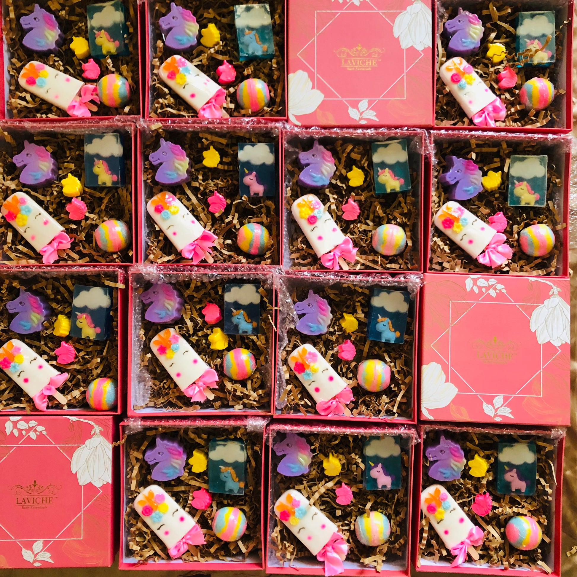 Unicorn family soap with 2 mini unicorn soap ( Unicorn Colour May Vary )